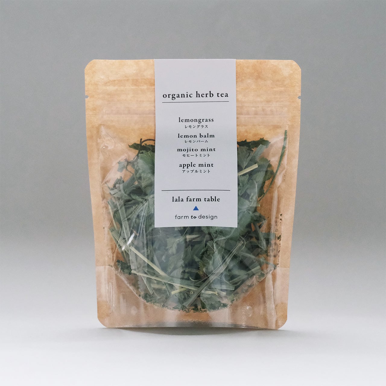 「lala farm table」のレモングラス、レモンバーム、モヒートミント、アップルミントの定番ブレンドです